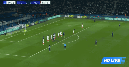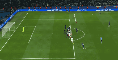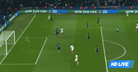 第50分钟,巴黎获得前场右路的任意球,内维斯的头球,居然被库恩挡了出去。
