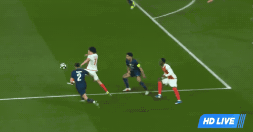第9分钟,摩纳哥前场抢断,阿克利乌舍的传中已经足够舒服,库利巴利居然放了高射炮。
