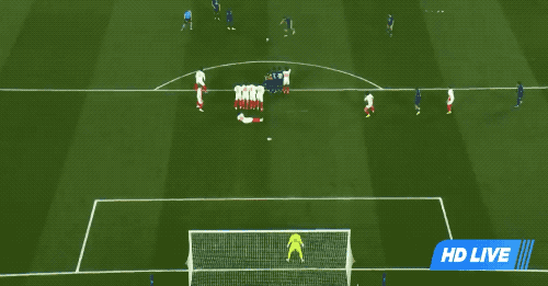 第21分钟,克瓦拉兹赫利亚横向摆脱被放倒,裁判判罚任意球,克瓦拉兹赫利亚亲自操刀,皮球绕过人墙打高。