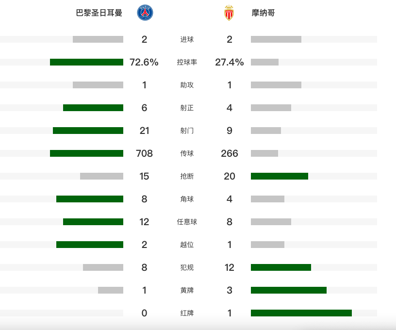 北京时间2月25日凌晨,欧冠淘汰赛继续进行,巴黎圣日耳曼主场迎战摩纳哥。上半场比赛,巴尔科拉吊射击中横梁,阿克利乌舍扳平比分。第58分钟库利巴利两黄变一红被罚下,2分钟后,马尔基尼奥斯后包抄破门。第66分钟,克瓦拉兹赫利亚也收获进球。补时阶段,摩纳哥扳平比分。最终,总身价12亿欧元的巴黎圣日耳曼在11打10的情况下,2-2战平摩纳哥,总比分5-4晋级16强。